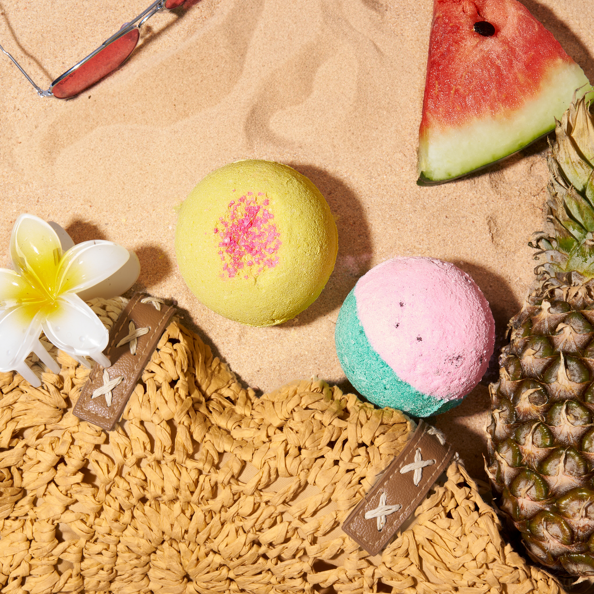Escape to a tropical paradise with our fruity bath bomb duo. This set includes two refreshing scents juicy watermelon and sweet pineapple crafted to transform your bath into a fizzy, fragrant retreat.