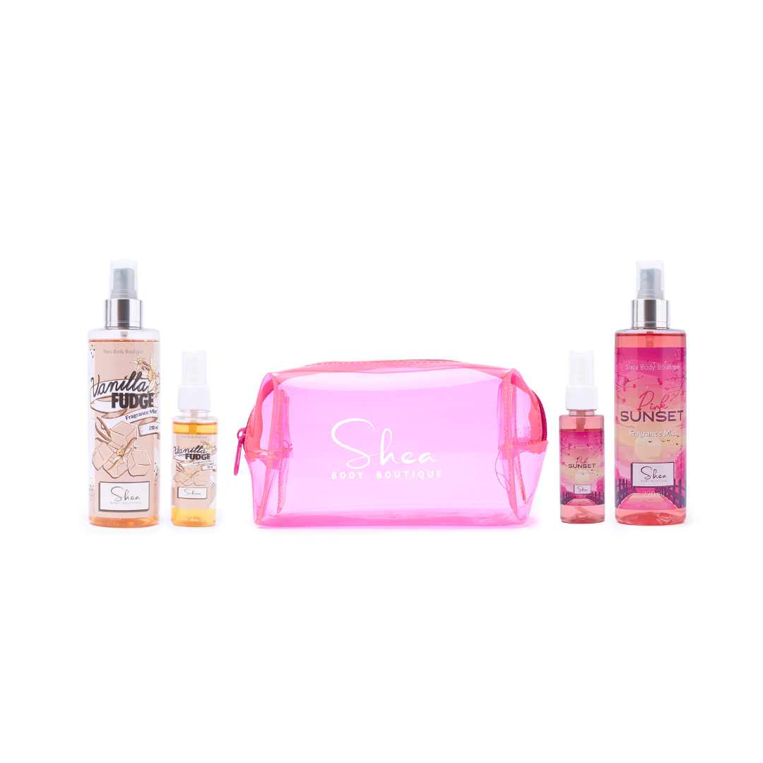 مجموعة غروب الشمس الوردي + فادج الفانيليا